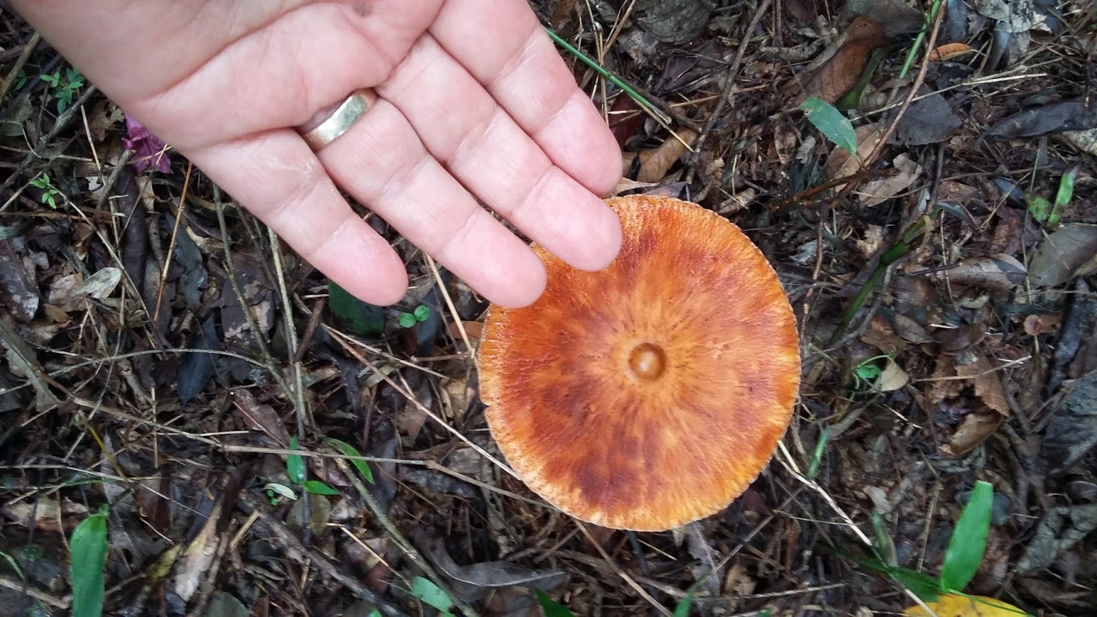 Iniciamos a trilha na mata riquíssima em embaúba, cipós, samambaias-açú, araucárias e muitas florzinhas e fungos muito coloridos